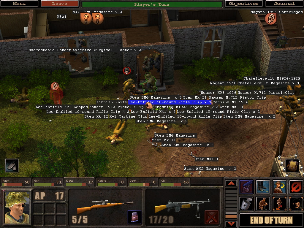 | [Game]: Silent Storm (PC) [Genre]: RPG, Turn-based [Dev]: Nival Interactive [Elements]: Loot, Overhead text Silent Storm: Loot (1024x768) Loot just drops on the ground. If you press ALT you can see the name of everything that's been dropped and can use the name to pick up what you want. |